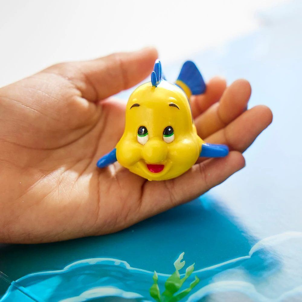 - Accessories include pearlescent shoes, hair ribbon, baguettes, ”dinglehopper” brush, plus Flounder figure