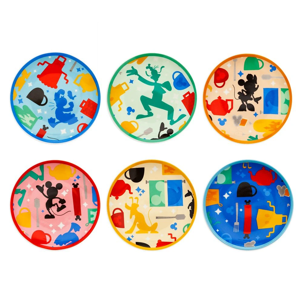 Mickey and his friends will be welcome guests at any party or gathering in the form of this set of tidbit plates and caddy. Minnie, Donald, Goofy and Pluto join Mickey in the colorful designs of the six bone china plates, which come in a decorative Mickey icon metal carry caddy!