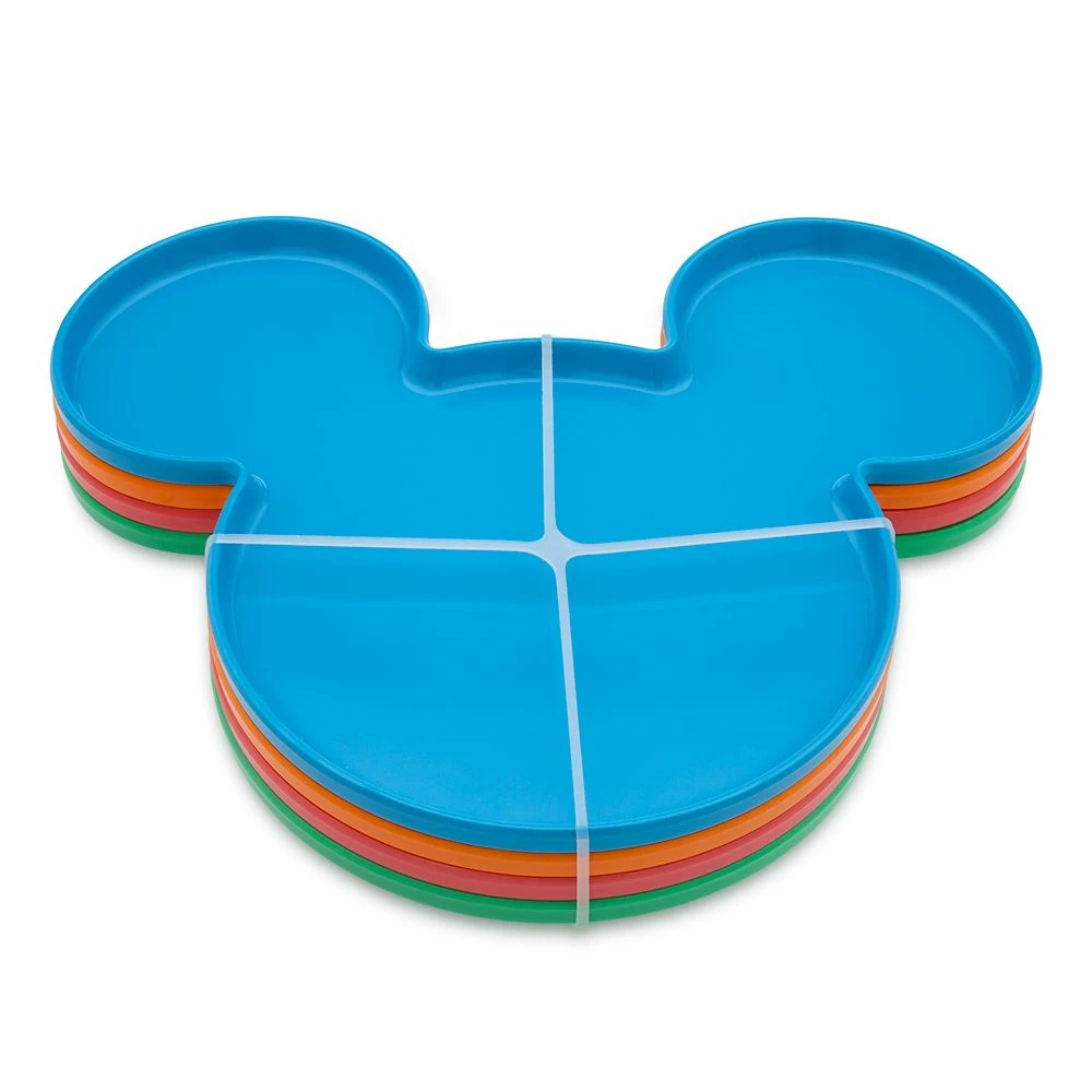 Mickey will add some color and character to mealtimes with this plate set. Made with robust melamine, the four Mickey icon-shaped plates each come in a different color so you can each pick your favorite.