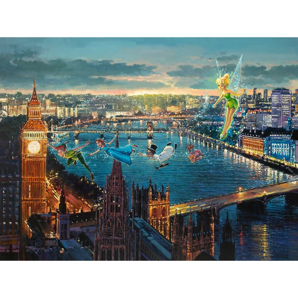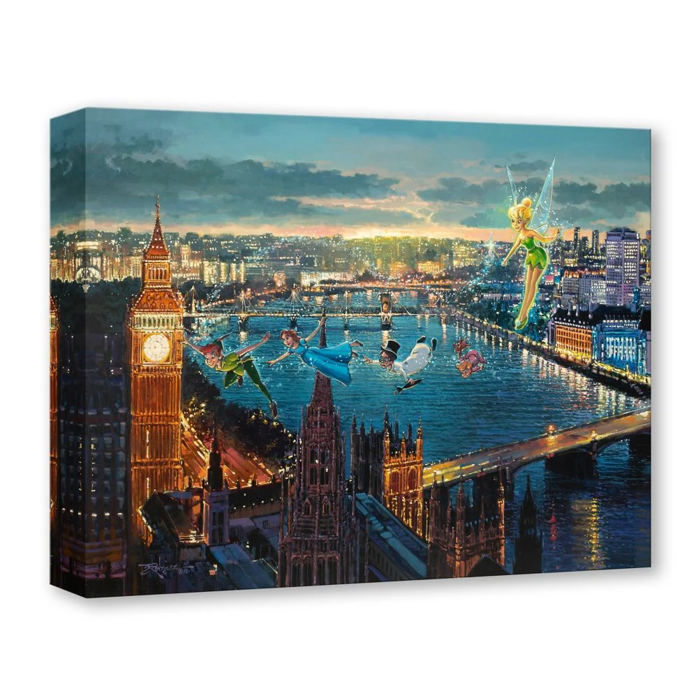 Celebrate the art and legacy of Disney Animation with this limited edition gicleé canvas print recreating the famous flight of Peter Pan, Tinker Bell, and the Darling children over the Thames. ”Peter Pan in London” by Rodel Gonzalez is gallery wrapped and ready to hang.