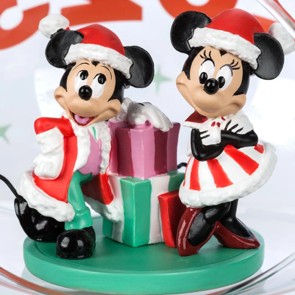 - Fully sculpted Santa Mickey and Mrs. Santa Minnie figures inside
