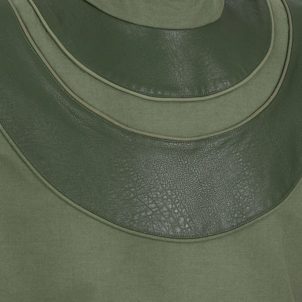 - Imitation leather accents around neck