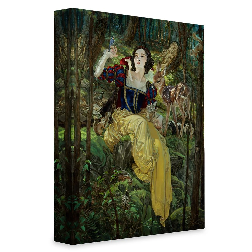 Disney’s original princess, Snow White, is surrounded by some of her woodland friends on this charming picture by Heather Edwards. ”With a Smile and a Song” is a limited edition giclée on canvas that comes ready to hang in your home.